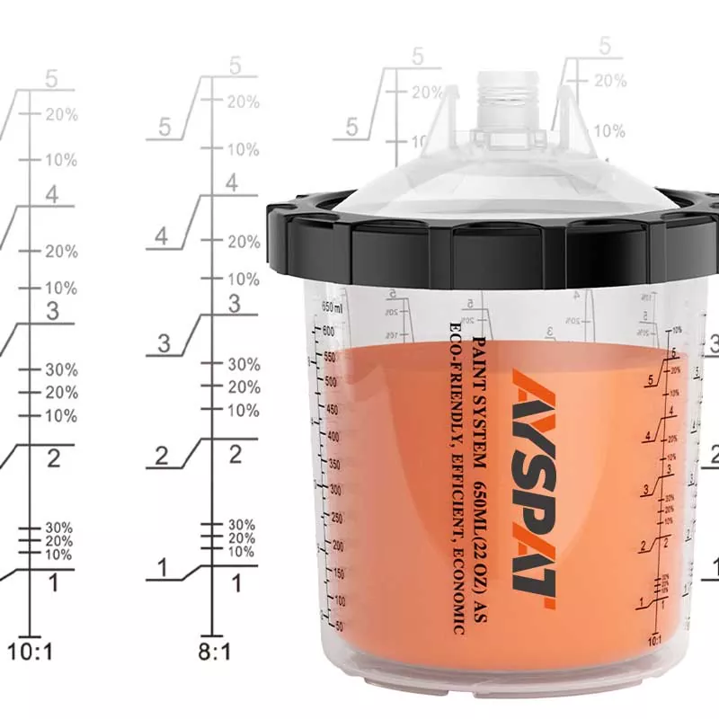 AYSPAT 200ML Disposable Paint Cup System 1.0 ble designet ut fra den økende etterspørselen fra malere for mer effektiv maling. Det kan spare kostnader og realisere flervinkelmaling. Vi anbefaler den på det sterkeste å bruke i malingssituasjoner som bil, industri, hjemme og andre felt. Se etter engangssprøytepistolen laget i Kina, som vil gi deg en uforglemmelig maleopplevelse. Vi er kildeprodusenten av engangs malingskoppsystem, du kan kontakte oss via den offisielle nettsiden eller sosiale medier. Vi kan også tilby gratis design og prøvelevering.