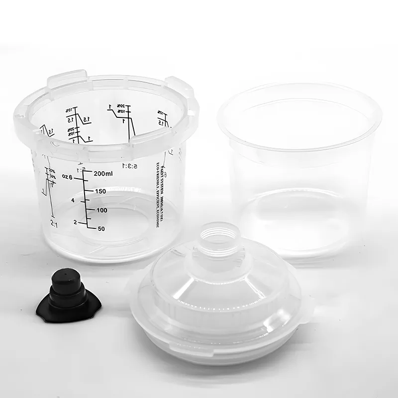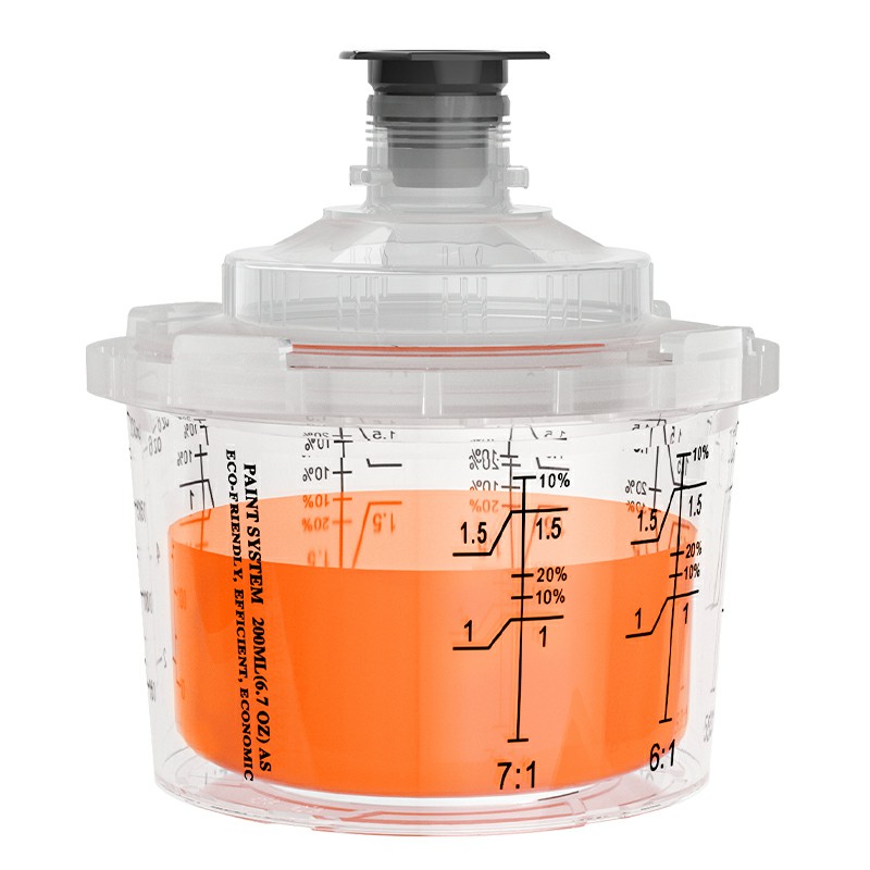 200 ml disponibel spray kopp er et engangsmalingssystem designet for 1-panelreparasjoner, det er egnet for områder som krever 6,8 fl oz (200 ml) eller mindre materiale. Det har oppgradert Outer Cup-designen basert på AYS1.0-serien. Den integrerte ytre kopplåsen gjør det uten kragedeler, noe som gjør montering og demontering av spraymoppen lettere; AYS3.1 -serien Paint Cup -systemet er AySPATs Newst Disposable Spray Gun Cup, noe som forbedrer effektiviteten og kvaliteten på hele prosessen med malingsmiksing, sprøyting og lagring.