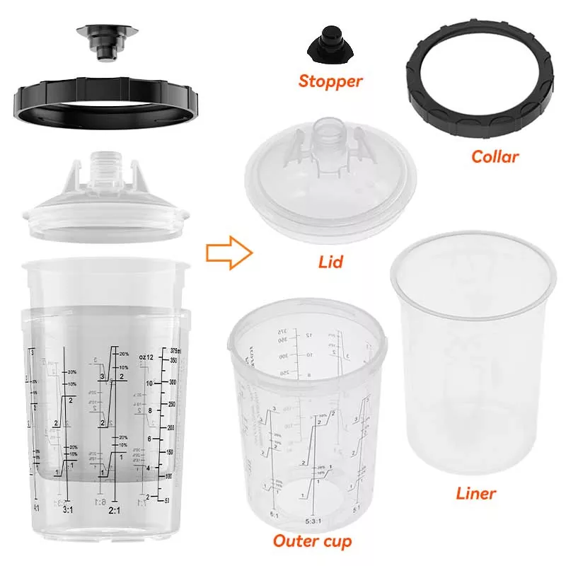 Hver komponent iAYSPAT400ML sprøytepistolkopp er laget av helt nye materialer PP og PE plast. Vi har avansert produksjonsutstyr pluss en unik sprøytestøpeprosess, som gjør at hver komponent kan jobbe sammen for å produsere et perfekt produkt.