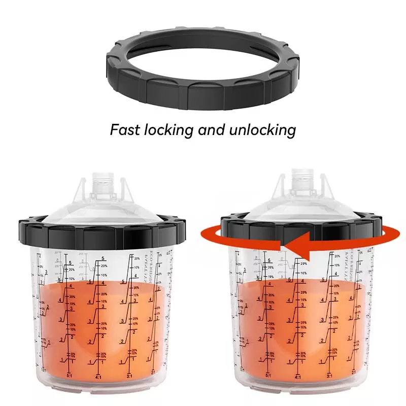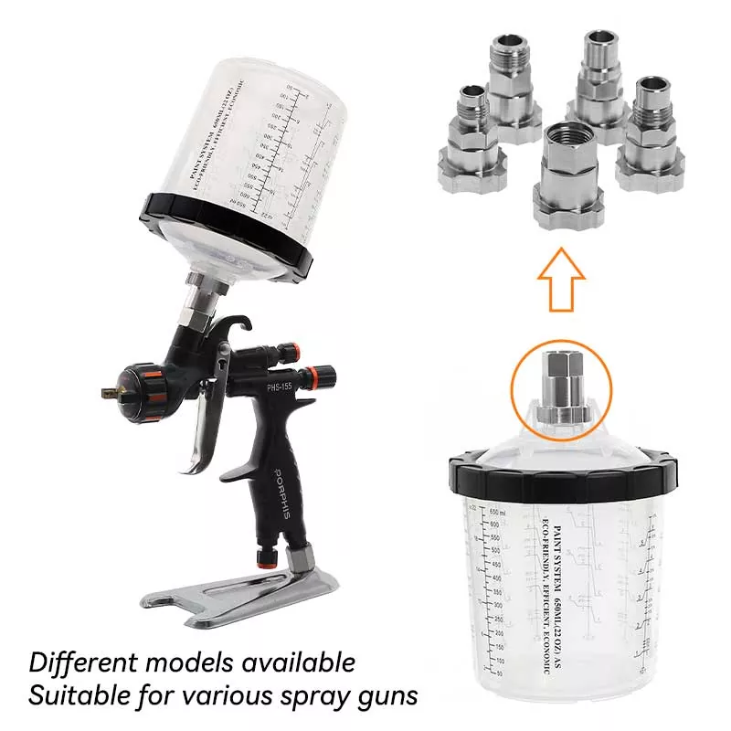 Denne 400ML disponible malingskoppsystemet 1.0 erstatter i utgangspunktet den tradisjonelle gravitasjonskoppen fordi den ikke bare sparer mer maling, men også forbedrer malingseffektiviteten. Nærmere bestemt, den utsøkte utformingen av den automatiske spiralen av foringen ved maling gjør at malingen blir fullt utnyttet; i mellomtiden unngår designen med hurtiglåsing pluss utskifting av foring å vaske koppen, slik at malejobben kan utføres effektivt og gjentatte ganger. Vi har adaptere for nesten alle merker sprøytepistoler på markedet for å møte erfaringsbehovene til forskjellige sprøytepistolentusiaster. Adapteren er laget av rustfritt stål, som er motstandsdyktig mot malingskorrosjon og meget slitesterk. Den tette kombinasjonen av foringen med lokket sikrer at koppsystemet ikke lekker maling under maling, og støtter langtidslagring av ubrukt maling for å unngå sløsing.